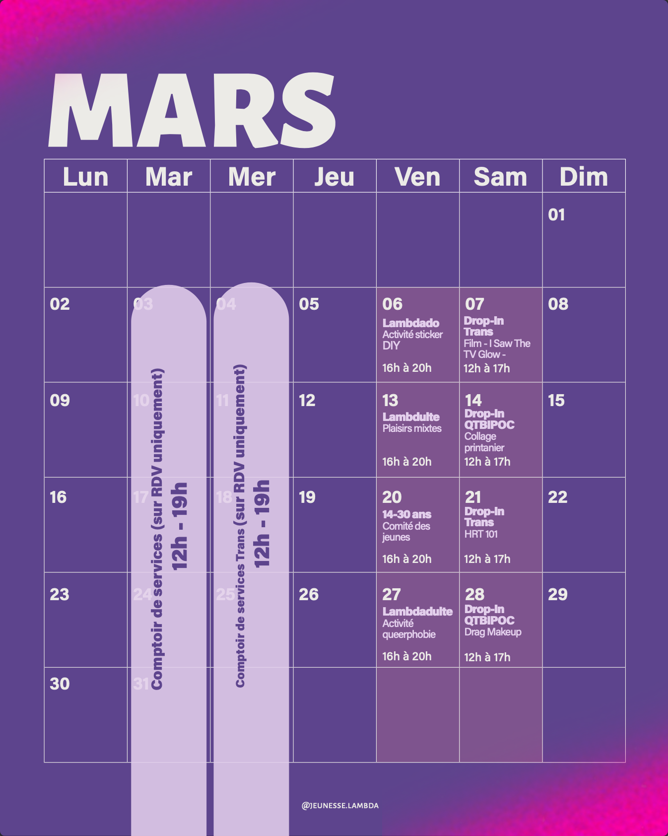 Un organisme communautaire créé par et pour les jeunes lesbiennes, gais, bisexuel·les, trans, non-binaires et queers ou en questionnement de 14 à 30 ans.